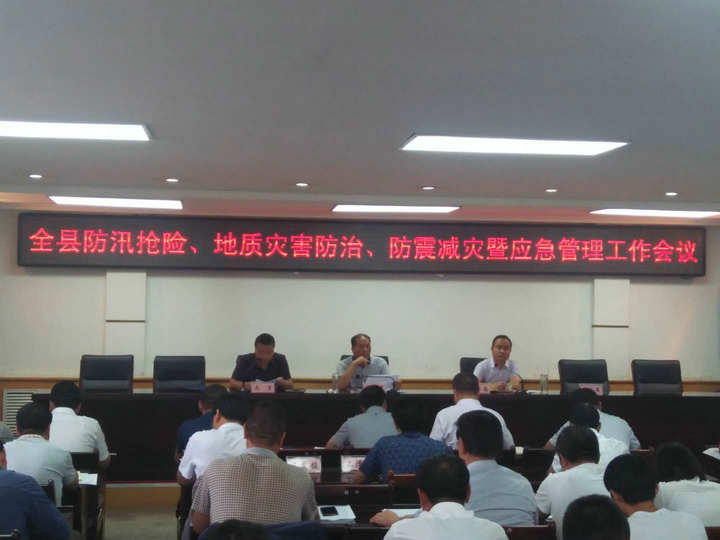 7月19日上午,在县政府五楼会议室召开全县防汛抢险、地质灾害防治、防震减灾暨应急管理工作会议。